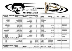 No sábado dia 18 data cumpriram-se 5 anos sobre o falecimento do Patrono da Secção – António Leitão. Os atletas da manifestaram a sua homenagem participando duma forma massiva em diversas provas. Para ele vai todo o nosso esforço no intuito de seguir as suas pisadas e quiçá repetir as suas magníficas prestações. Entre cerca de 10.000 atletas, PAULO REIS faz 18º lugar, vence escalão na “Corrida do Dia Do Pai” no Porto e dedica Triunfo ao ANTÓNIO LEITÃO. Entre os cerca de 10000 participantes o nosso atleta terminou num magnífico 18º lugar da geral e triunfou brilhantemente no seu escalão. Parabéns Paulo Reis, Parabéns Equipa, Parabéns Espinho. Este Fim de semana a Equipa Tigre apresentou em várias frentes. Paulo Oliveira foi á Capital onde participou na ½ Maratona de Lisboa, em Aveiro os mais jovens participaram no Torneio Abertura e no Porto uma equipa de 5 atletas participou na Corrida do Dia do Pai. A Aveiro a equipa fez-se deslocar com a maior comitiva de sempre composta por 16 atletas. André Almeida, André Lima, Alexandre Sousa, Arsénio Rocha, Guilherme Oliveira, Lara Martins, Lídia Ferreira, Márcia Vieira, Nuno Oliveira, Pedro Sárria, Rafael Ornelas, Rogério Grabulho, Rita Neiva, Riana Prots, Sara … Continue a ler Corrida do Pai, Meia maratona de Lisboa e Torneio Abertura